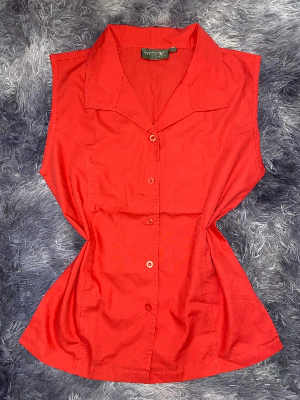 Chemisier rouge sans manches à col
