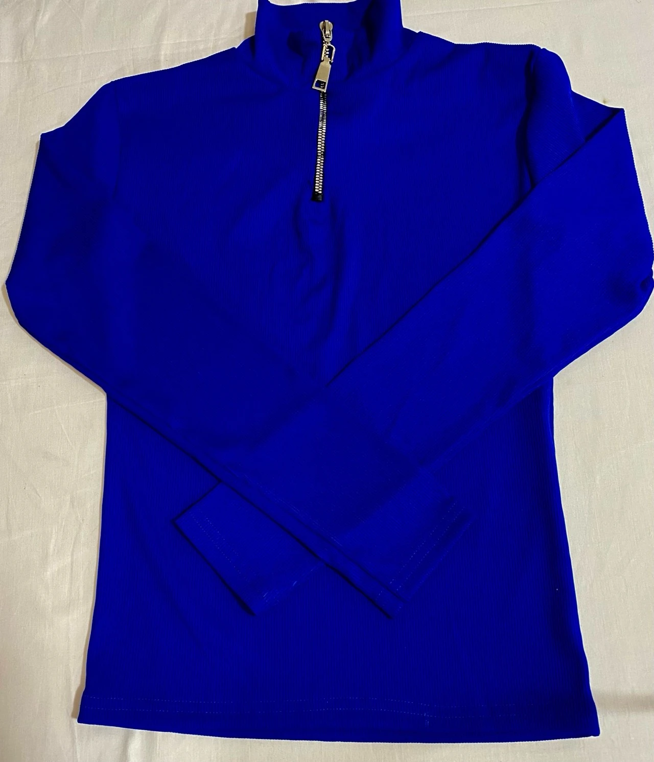 Haut côtelé bleu à demi-zip