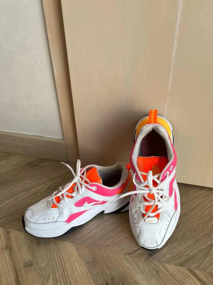 Ce ne sont pas de simples chaussures, c'est une déclaration. La semelle épaisse vous donne une rehausse assurée, tandis que les touches ludiques de rose et d'orange offrent une touche de couleur éclatante. La base en cuir blanc offre une toile de fond propre et classique, permettant à ces accents audacieux de vraiment briller. Remarquez la conception respirante autour de la zone des orteils pour un port confortable, même pendant les journées actives. La languette de traction au talon facilite l'enfilage et le retrait, parfait pour les matins chargés. Enfilez ces baskets accrocheuses et laissez vos pieds parler.
