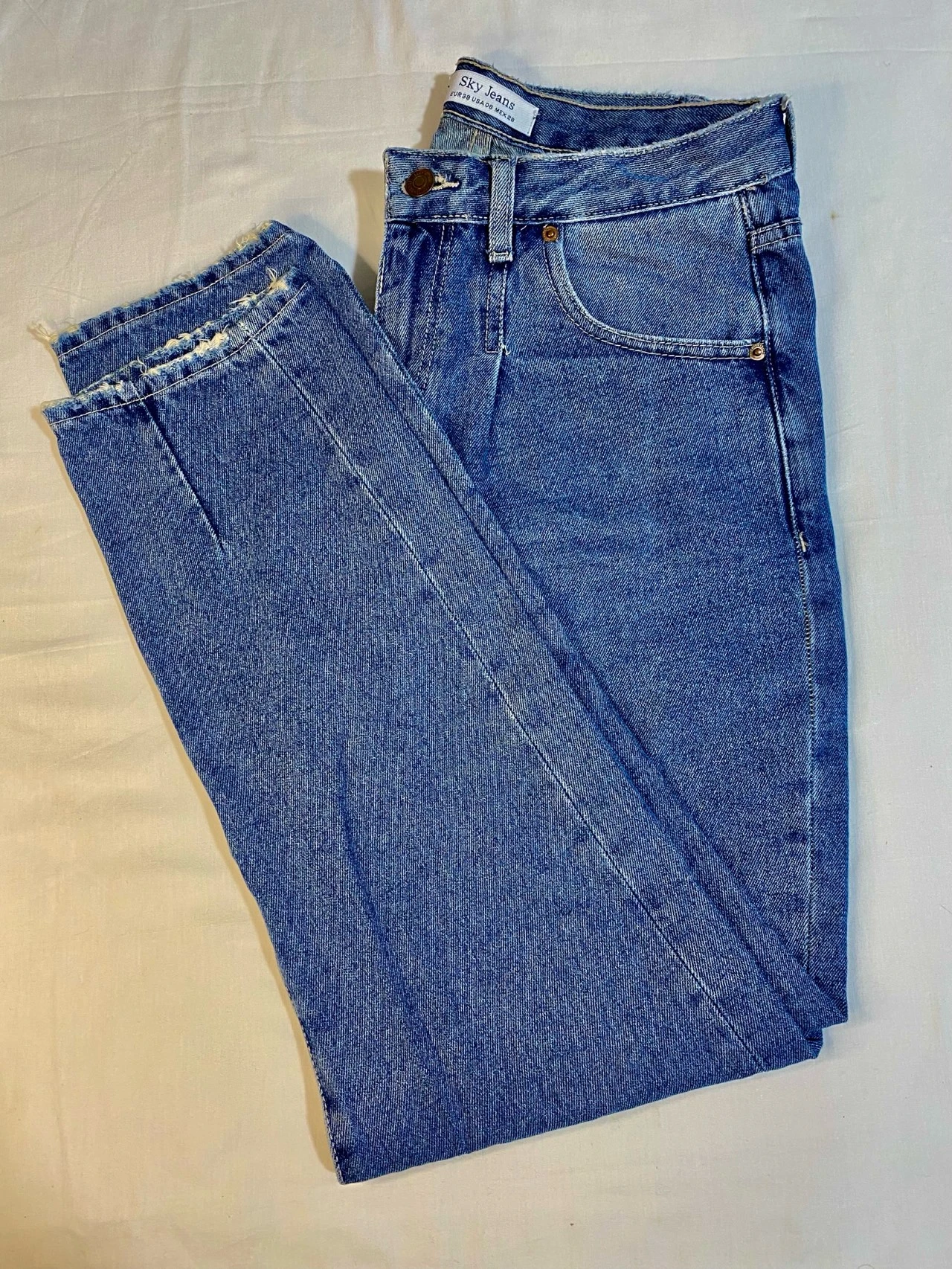 Jean en denim bleu à ourlet brut